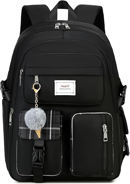 This black girls' school backpack combines style and functionality, designed specifically for teenagers and college students. It features a spacious main compartment to securely hold books and a padded laptop sleeve for added protection. Durable materials ensure long-lasting use, while adjustable straps provide comfortable carrying throughout the day. Ideal for daily school or college use, this backpack offers practical organization without compromising on a cute, youthful look.